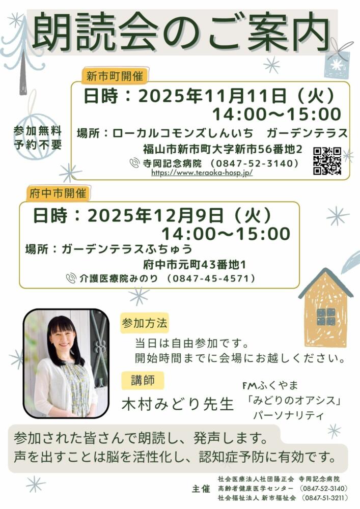 トップページ > 高齢医学 > 11月・12月 朗読会を開催します!